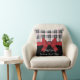 This product design features an illustrated red ribbon and tartan plaid pattern in black, white, and red. With its unique classic graphics, it makes a modern chic throw pillow with personalised text.