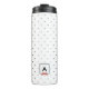 This monogrammed thermal tumbler features a black bordered square with a red ribbon against a black and white polka dot pattern. Great as personalised gifts for friends and family as well gifts for your party, events or even for bridesmaids.
