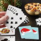 A red Santa Hat personalised with a name in bright red decorates these turquoise playing cards, making a fun Christmas gift or stocking stuffer.
