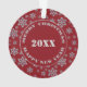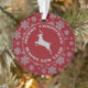 A bright silver faux glitter reindeer is at the centre of this beautiful Christmas ornament. He is surrounded by silver text that says Merry Christmas Happy New Year. A circle border of silver glittery snowflakes finishes the edges. All is placed on a Christmas red background. The other side of the ornament has the same image, but with your custom text. Change the year to your name, if you'd like. *Please note - the image is printed and contains no actual glitter.*