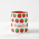 Personalised strawberry mugs with name, monogram or initials. Template mug to customise and personalise easily. Bright red strawberries pattern reminds about the Summer any time you see the coffee cup. Write your name, family name or any other text to make it unique and personal. It's also easy to change the font if you'd like it.