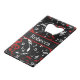 Perfect gift for the music lover or musician with a design featuring a random jumbled pattern of musical notes and treble clefs in red and white on a classical black background. Easy to customise with your own text on a coordinating accent.