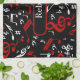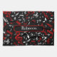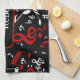 Perfect gift for the music lover or musician with a design featuring a random jumbled pattern of musical notes and treble clefs in red and white on a classical black background. Easy to customise with your own text on a coordinating accent.