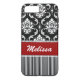 Personalised Red, White, Black Damask Striped Case-Mate iPhone Case