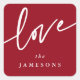 Square sticker/envelope seal with the word 'love' in a handwritten script font. The rest of the text is completely customisable - so the font style, size, colour and placement can be changed. The background colour can also be changed using Zazzle's editing tools. This design is available in different colours and on other sticker shapes/sizes in my store.