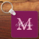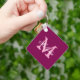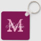 Personalised red wine colour name monogram square keychain. Vintage initial letter with elegant script typography. Cute favour gift idea for trendy women and girls. Make your own monogrammed present. Double sided print.
