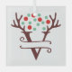Personalised Reindeer Antlers Name "V" Glass Tree Decoration
