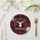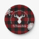 Personalised Reindeer Red and Black Buffalo Plaid Paper Plate