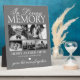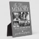 Memorial plaque featuring a modern grey background, 5 photos of your lost loved one, the text "in loving memory", their name, birth/death dates, a love heart, and the remembrance saying "gone but never forgotten".