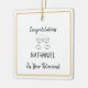When a friend or colleague retires, show your appreciation and good wishes with a unique keepsake ornament. This elegant hanging ornament displays the message 'Congratulations On Your Retirement' in script typography, and a picture of two champagne glasses. Personalise the ceramic decoration with the recipient's name for an individual touch, and add your own message on the reverse side. In stylish white, black and faux gold, the ornament is finished with a gold ribbon at the top. With an optional presentation gift pouch, the ornament is sure to be a winning gift and memento for the years ahead.