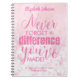 A striking personalised retirement notebook. This beautiful typography designed notebook would be perfect as a retirement gift for a nurse, physician or teacher. The quote 'Never forget the difference you've made' is featured in pink typography on a pale pinkl background. Add your own message and recipients name to make a truly unique and personal gift idea.