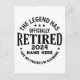 "The Legend has officially retired not my problem anymore" is an original and funny retirement saying with awesome typography font lettering. It is a great gift idea for your lovely retired dad, mum, grandma, grandpa, and all grandparents! the best awesome illustration for your retirement party celebration! If you like this artwork, check out similar designs in the Omitay store. Thank you for supporting a local artist.