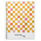 Modern Retro Chequered Notebook with some squares in pink, yellow ochre, green, and orange, giving this classic chequered pattern a fun twist. Personalise this notebook with your girl's name. Perfect for back to school or a Christmas gift.