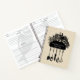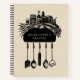Retro personalised food and utensils illustration recipe hard cover notebook in black and cream. Add your name and create your new recipes with pages sections for recipe, number of servings, prep time, ingredients, and instructions.