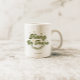 An elegant green and gold coffee mug, designed with retro lettering and florals. If desired, add your name, initials, or custom text.