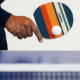 This personalised ping pong paddle features a retro colour palette with a cool trendy font.