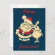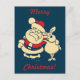 Festive Christmas retro style theme with santa claus and one of his reindeers, their arms around each other in a buddy pose. Merry Christmas greeting on the front of the card. On the back is a message which reads, Wishing you Peace and Joy this Holiday Season and every happiness throughout the New Year. Personalise it with your name.