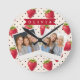 Personalised Retro Strawberry Polka Dot Vintage Round Clock