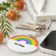 Add a name or other message to create your own custom keychain. This round keychain features a retro style illustration of a rainbow in bright colours with white clouds below. Your text appears in bold black lettering in the white clouds.