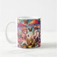 Cute, personalised coffee mug for a couple. Add couple's names in the personalise area. Anime boy and girl sitting in a batch of vintage mushrooms and flowers with butterflies flying in the background.