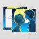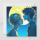 Personalised anime Asian girl and boy romantic moment kissing in front of a full moon. Valentine's Day card.