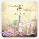 Romantic vineyard winery wedding sticker design with wine bottle, glasses and grapes on a vintage style background - It can be personalised with names, a date or any text that you wish to add. -