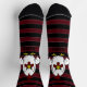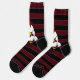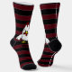 Cute white cartoon rooster on a background of burgundy and black stripes. ***Please note - change the name/personalisation on each sock individually -