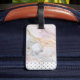 I was happy with the acrylic tag but it came with a thin leather strap to attach the tag to luggage (like a cat collar). I replaced the strap with a metal ring off of a key ring as the leather strap would come undone or break easily as luggage is sometimes handled without much care by airlines. Printing is great. Colours and positioning of the design I put on the tag were perfect. Very pleased.