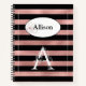 Elegant rose gold and black stripes with an ornamented initial make this a cute and classy notebook. Personalise it with your name or customise it for someone else!