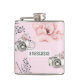 The flask itself is fine. It’s a cheap flask, obviously bought in bulk, however am prepared to overlook that. Given that it is a personalized item, I would have liked to have seen gift boxing instead of the generic packaging. Terrible printing, and/or quality. It’s a cheap, tacky vinyl. It is not cut straight and is also applied in a way that it is overhanging the bottom, causing the glue to catch on items and it will eventually roll and tear, damaging the wrap.