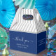 Looking for personalised favour boxes for your next party, shower, or wedding reception? These royal blue favour boxes are simple and elegant and will compliment any wedding theme. Personalise wedding favour boxes with the couple's name, wedding date, and a special quote or saying on the side. Custom wedding favour containers, boxes, can hold candies or a small gift for guests. These can also be used for wedding cake slice boxes to send home with your guest. Give a small gift or favour to say "thank you for coming"