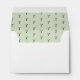 Personalised white envelope featuring a ruby-throated hummingbird. Inside of the envelope is a pretty hummingbird pattern on a light green background. The font style, font size and colour can be changed by clicking on "customise further". The bird image is taken from an original watercolor by C. Dobbins.