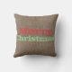 Stylish Christmas "ho ho ho" holiday pillow in vintage style burlap print background pattern with aged weathered red, green and white text. Great Merry Christmas gift for country theme.