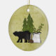 Rustic Country Mountain Silhouette Bear Christmas Ornament with Green Background. Personalise with a name and year. *