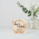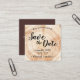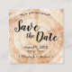 Personalise these unique wedding Save the Date square mini cards. It features a printed wood grain cut tree rings, perfect for your rustic wedding.