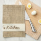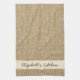 You can personalise the name on this country and western style rustic burlap pattern kitchen tea towel. The burlap is simulated by the graphic. To change the name, use the personalise option. A classic kitchen design.