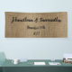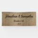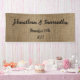 Create a warm and inviting atmosphere at your celebration with this personalised rustic wedding banner, featuring a beautiful burlap-inspired texture and nature pattern. Designed in soft, earthy tones, it’s perfect for country chic, farmhouse, boho, vintage, and barn-style weddings.