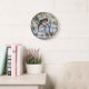 Celebrate your timeless love with this beautiful personalised photo clock, a perfect keepsake for weddings, anniversaries, or a new home. The rustic-inspired design features a charming photo of a newlywed couple in a natural setting, complemented by classic Roman numerals on a round face. Easily customise it by uploading your photo. Select “Personalise this design” to upload your photo. Note that the default photo filter creates a subtle vignette. If this blending option doesn’t work with your photo, select “Edit using the design tool” to remove or adjust the photo filter. You can also use Zazzle’s design tool to customise the photo placement, adjust the colours of the Roman numerals, or even add the couple’s names and a significant date. This will create a truly unique gift.
