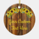 Personalised Rustic Wood Sunflower Custom Text Ceramic Ornament
