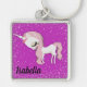 Personalised Sad Whimsical Unicorn on Pink Key Ring