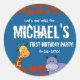 Personalised Safari 1st Birthday blue background Classic Round Sticker
