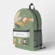 Make every adventure extra special with this Personalised Safari Animals Backpack, designed to delight little explorers. Featuring a charming illustration of friendly jungle animals - including a gentle giraffe, playful monkey, and curious cub - this backpack brings a warm, storybook feel to everyday outings. The soft sage green background and modern, hand-drawn style create a calming yet playful look that’s perfect for young children. Customised with your child’s name across the front pocket, this backpack is as practical as it is adorable, making it easy to spot at school, daycare, or on family trips. Perfect for school, daycare, travel, or playdates, this backpack combines functionality with sweet personality - a keepsake your child will love carrying wherever their adventures take them.