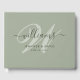 Elegant personalised monogram sage green wedding guest book with modern script. Easily personalise online. Matching items available to complement this minimalist monogram sage green wedding guest book. For custom requests, please contact us via Zazzle chat.
