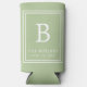 These personalised sage green tall seltzer can coolers/koozies are perfect for a wedding, engagement party, bridal shower or rehearsal dinner. The design features the trending sage green colour with simple, modern fonts. Customise them with your Initial, name and event date to make them one of a kind!