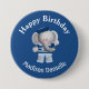 Customise this cute button with the name the birthday girl or birthday boy. Fun button has a elephant dressed in a sailor suit. Great for the birthday girl or boy to wear during a party or all day. graphicsandbits/kristiw