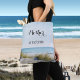 A modern designer bag featuring a coastal scene with sand dunes overlooking a beach and ocean. Beautiful for a beach wedding or for anyone who loves the beach! Recommended in medium size.