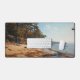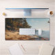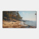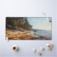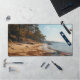 Bring the quiet beauty of this sandy beach into your workspace with this exquisite desk mat. Personalise it with a name printed on the lower right corner. This mat features a view of a beach with rocks and sea shells with trees lining the background and gentle waves rolling in with the sea breeze with a high-quality print from a high definition graphic. It provides a smooth and comfortable surface for your work for your laptop, keyboard and mouse. It can also transform your workbench with a stylish and elegant touch. Perfectly suited for all creators, artists, writers and anyone inspired.