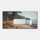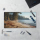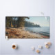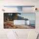 Bring the quiet beauty of this sandy beach into your workspace with this exquisite desk mat. Personalise it with a name printed on the lower right corner. This mat features a view of a beach with rocks and sea shells with trees lining the background and gentle waves rolling in with the sea breeze with a high-quality print from a high definition graphic. It provides a smooth and comfortable surface for your work for your laptop, keyboard and mouse. It can also transform your workbench with a stylish and elegant touch. Perfectly suited for all creators, artists, writers and anyone inspired.