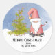 A whimsical illustration of Santa in the snow, wishing you a Merry Christmas. Easily edit the text with your own greeting and name.