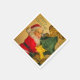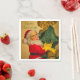 These charming, vintage-inspired Christmas paper napkins feature Santa Claus climbing a Christmas tree decorated with golden bells and a golden bow at the top. They offer a holiday wish customisation option, currently displaying "Merry Christmas!" in classic red, green, and gold colours, perfect for holiday parties, Christmas gatherings, or everyday seasonal use at home.
